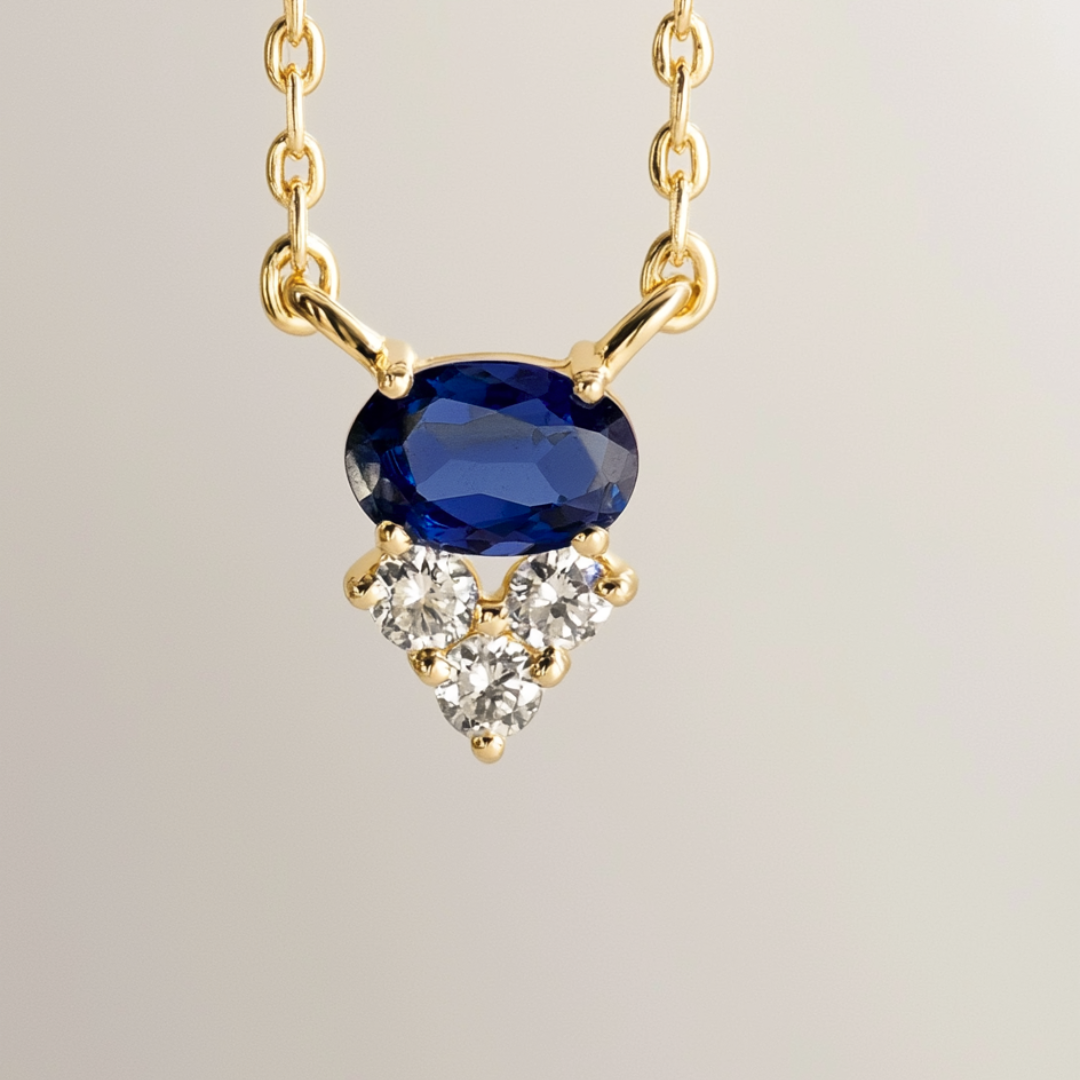 Colgante con cadena con zafiro natural facetado e incrustación de circonitas.